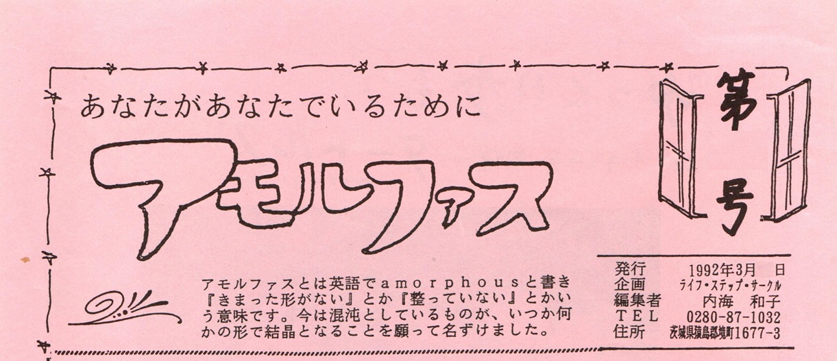 このミニコミ紙【アモルファス】は1989年に立ち上げた、本音で女性の生き方を考える勉強会「ライフ・ステップ・サークル」の機関誌として、メンバーたちの創意で作成されたものです。町で活躍する女性たちの支援にもなるよう、町内の各施設やお店に置かせてもらいました。